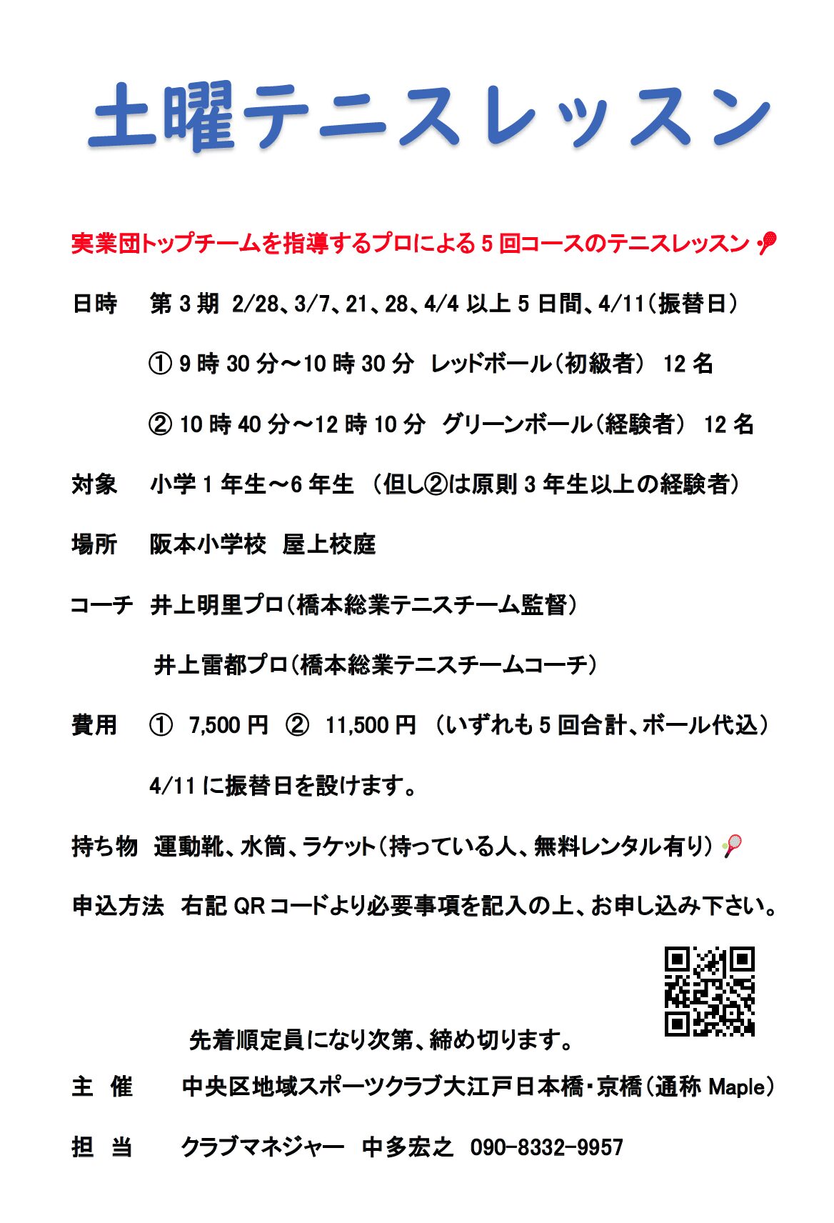 < 第3期 > 2/28(土)、3/7(土)、21(土)、28(土)、4/4(土)の5日間
