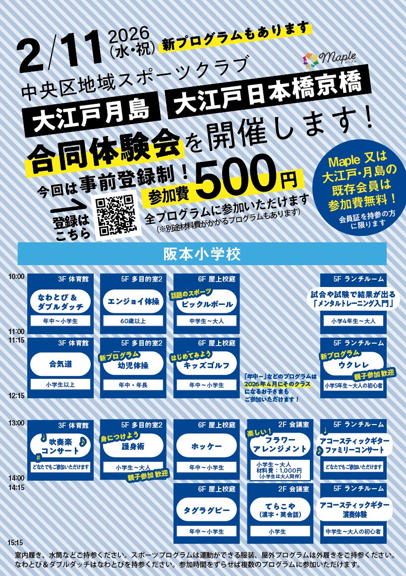 Mapleは、大江戸月島と合同で体験会を下記の通り開催します。